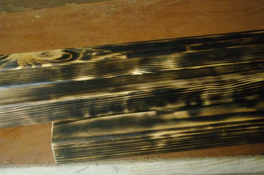 Обжиг устраняет многие недостатки древесины — синеву, начинающуюся гниль, поэтому такие поверхности рекомендуют обрабатывать огнем хотя бы однократно.