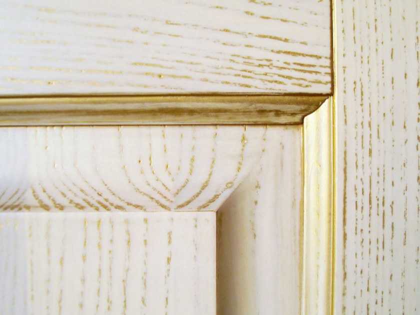 - После просушивания его зачищают и наносят новый слой. На втором этапе поверх краски можно нанести бронзовую или золотистую, причем это сделать можно на отдельных участках. Так достигается эффект старения.