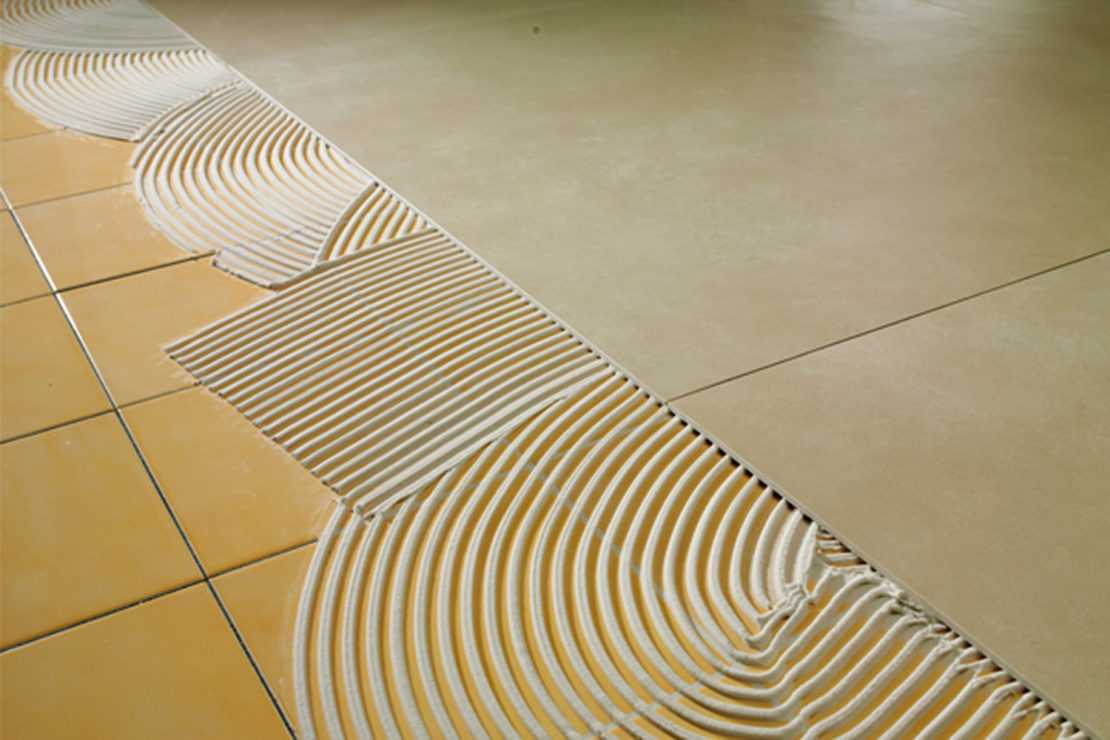 - Клей намазывают слоем в 3 мм мастерком, разравнивая зубчатым шпателем.