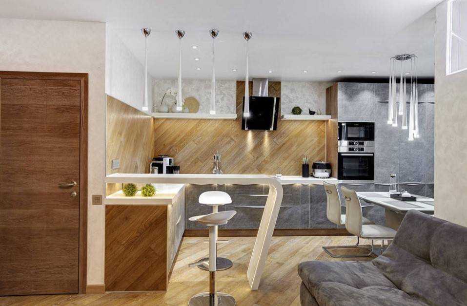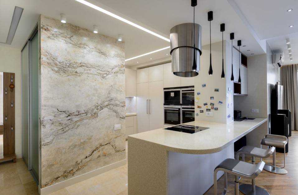 Для этого можно использовать в проекте абстрактный зигзаг от одного угла комнаты к другому или же выступы по краям. Имеют успех и натяжные потолки с кругом в центре. В этом случае получается создать уникальное освещение из точечного освещения по бокам и оригинального светильника-люстры в центре.