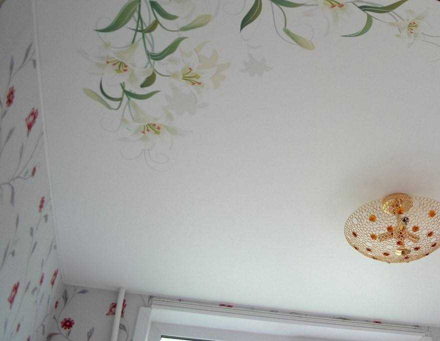 реалистичное изображение – в этом случае натяжное полотно, а чаще его фрагмент, воспроизводит реальный объект: трава и цветы на лугу, цветущие ветки яблони, небо с облаками. Обычно фрагмент с изображением комбинируют с однотонным полотном.