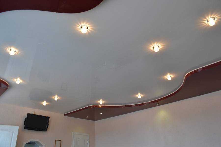 Варианты оформления натяжного потолка в зависимости от размещения светильников: