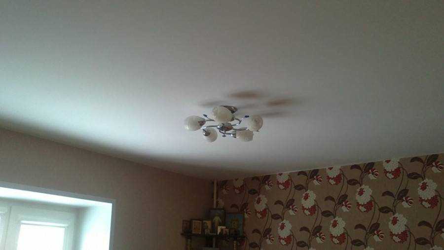 Дело в том, что при контакте с влагой он может полностью испортиться. Даже при небольшом количестве попавшей на него воды он намокает, а при высыхании в местах контакта с влагой проявляются пятна, которые невозможно удалить. Такой потолок придётся полностью менять.