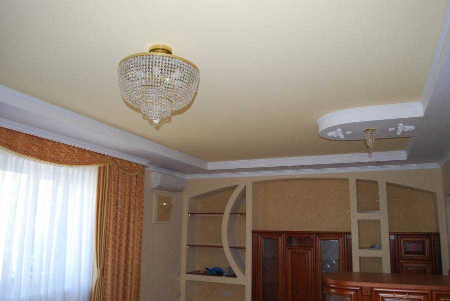 Выше мы уже упоминали, что такие потолки могут иметь любую форму, рельеф и размер. А также, при просадке здания или деформации фундамента, натяжной потолок останется целым и невредимым.
