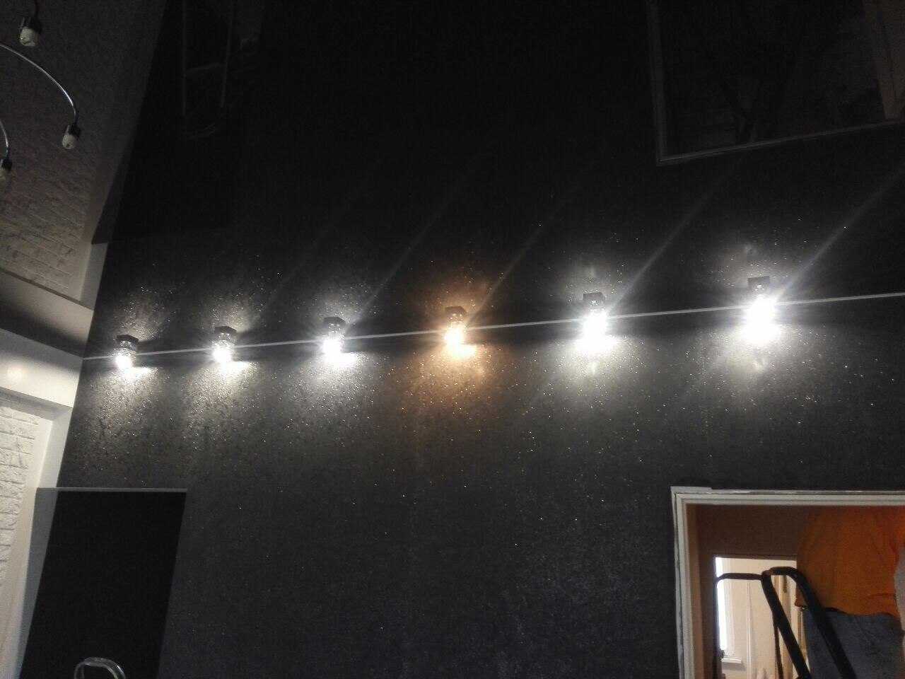 Отдельно стоит поговорить об освещении потолка. Для этого процесса подходят не все типы ламп. Если вы хотите использовать обычные лампы, то должны учесть их особенность сильно нагреваться. Поэтому для натяжных потолков подойдут лампы с мощностью не более 40 ватт.