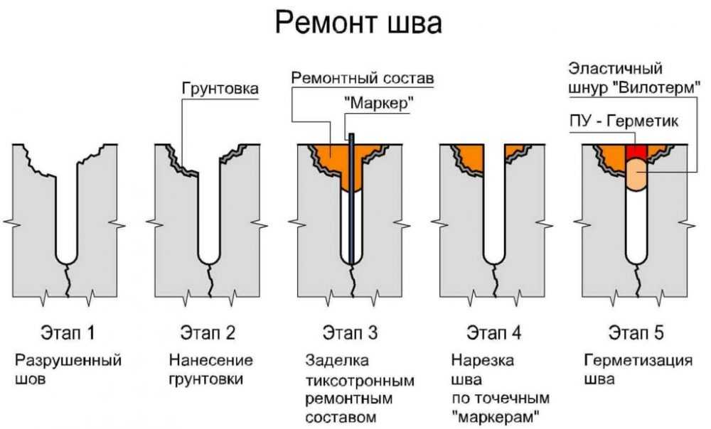 - Заделка трещин и щелей с помощью ремонтного состава или эпоксидной краски, смешанной с кварцевым песком.