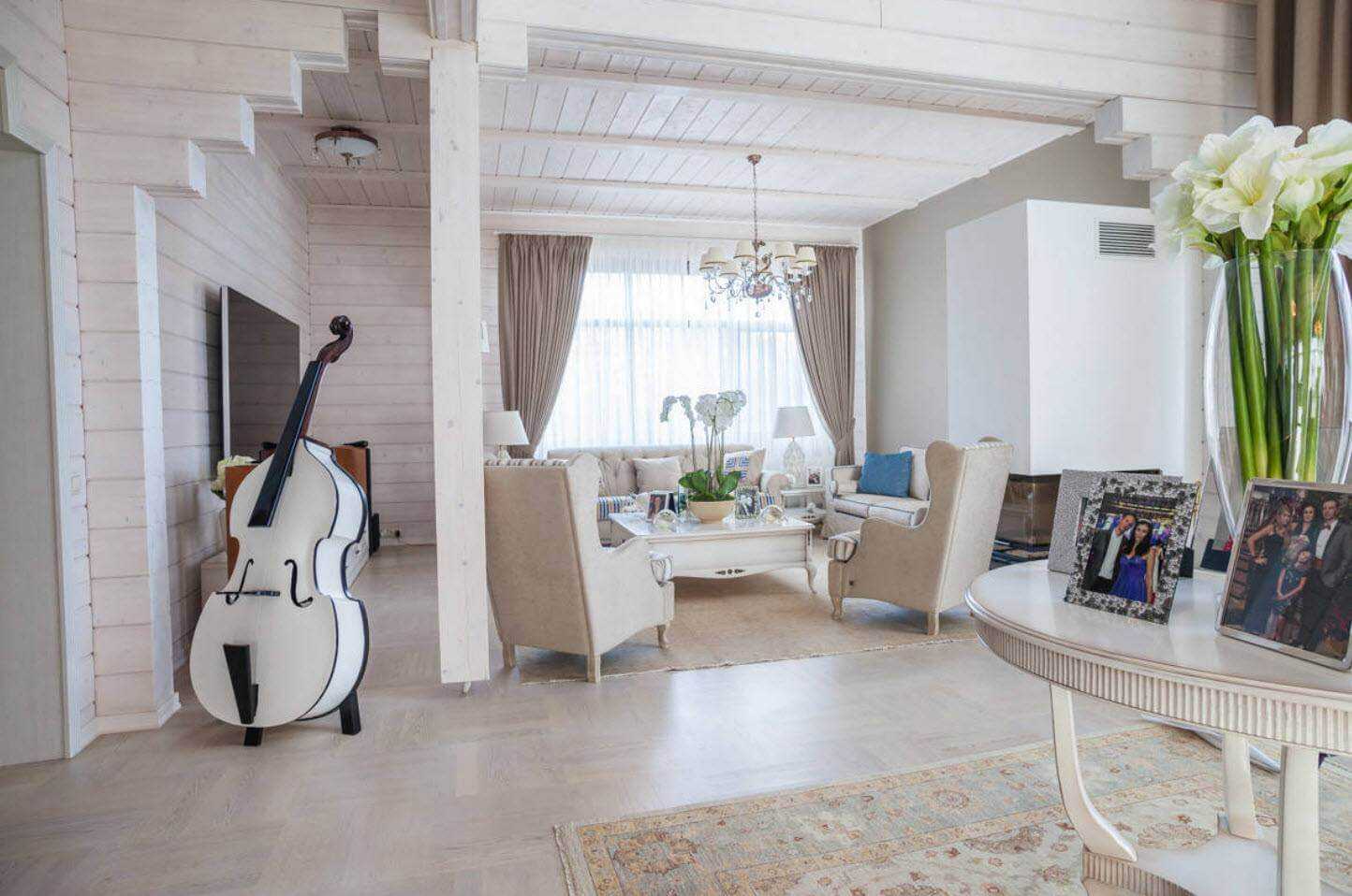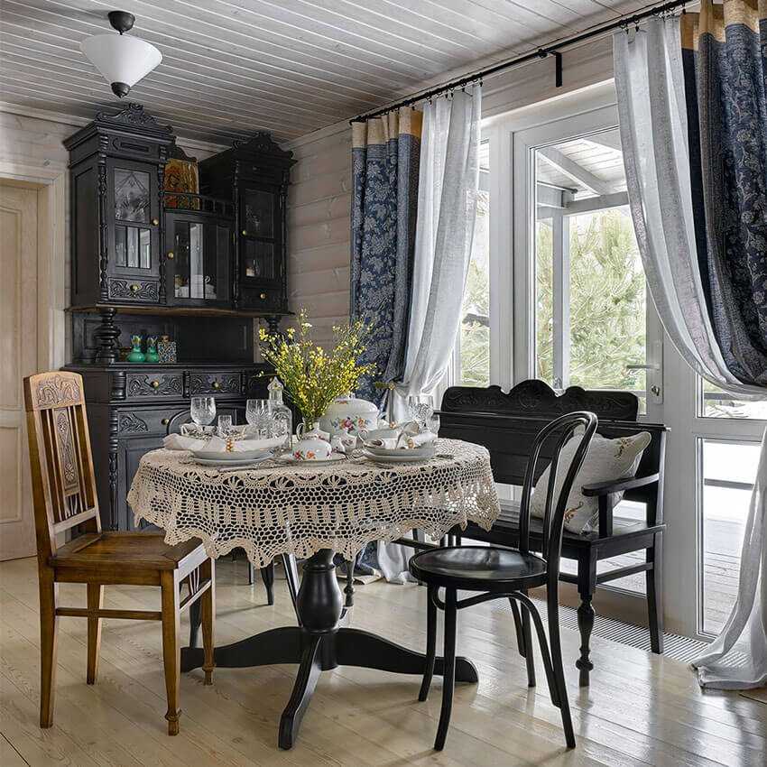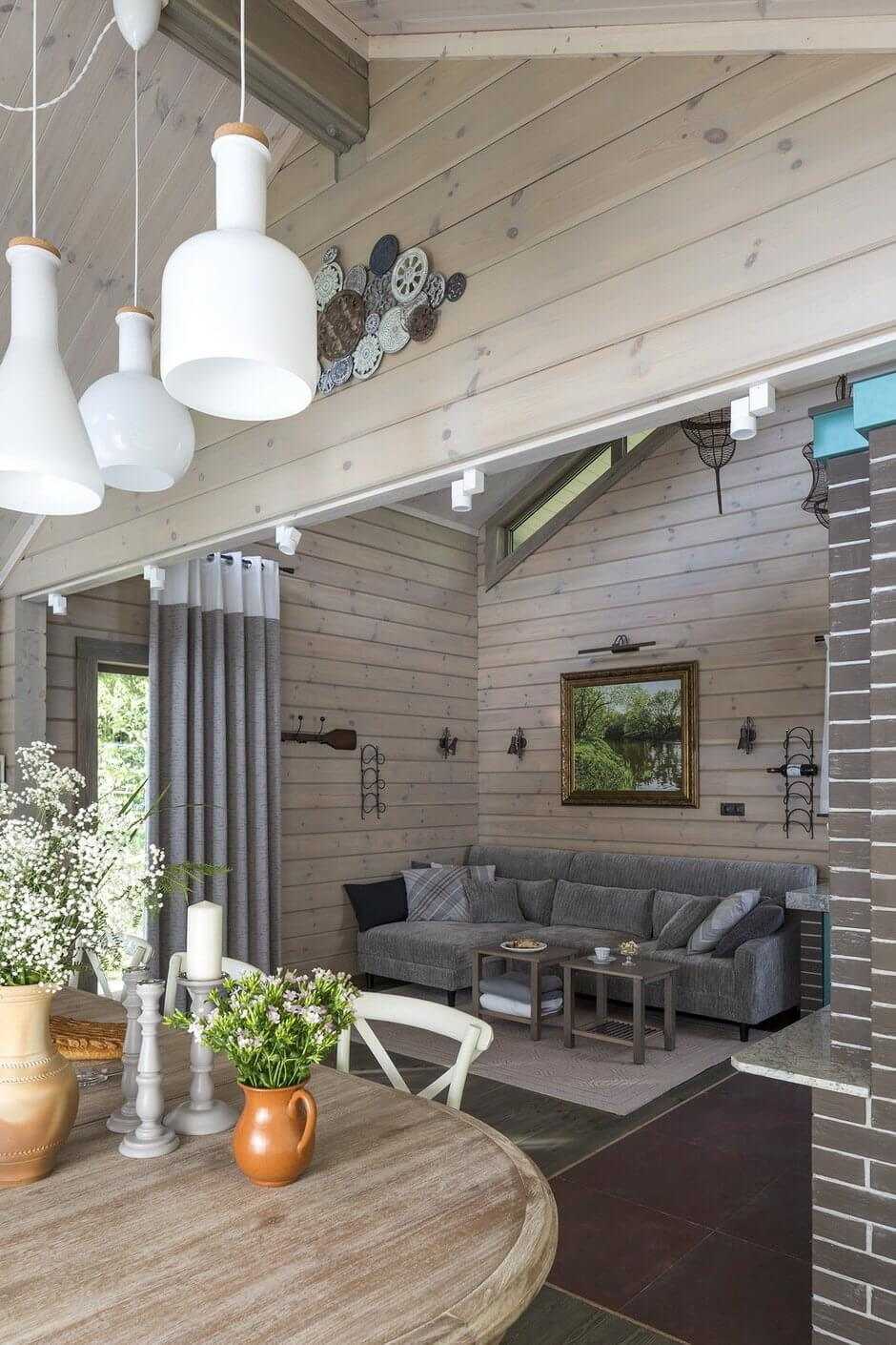 - Вагонка, в остальном деревенская натурального оттенка или побеленная,