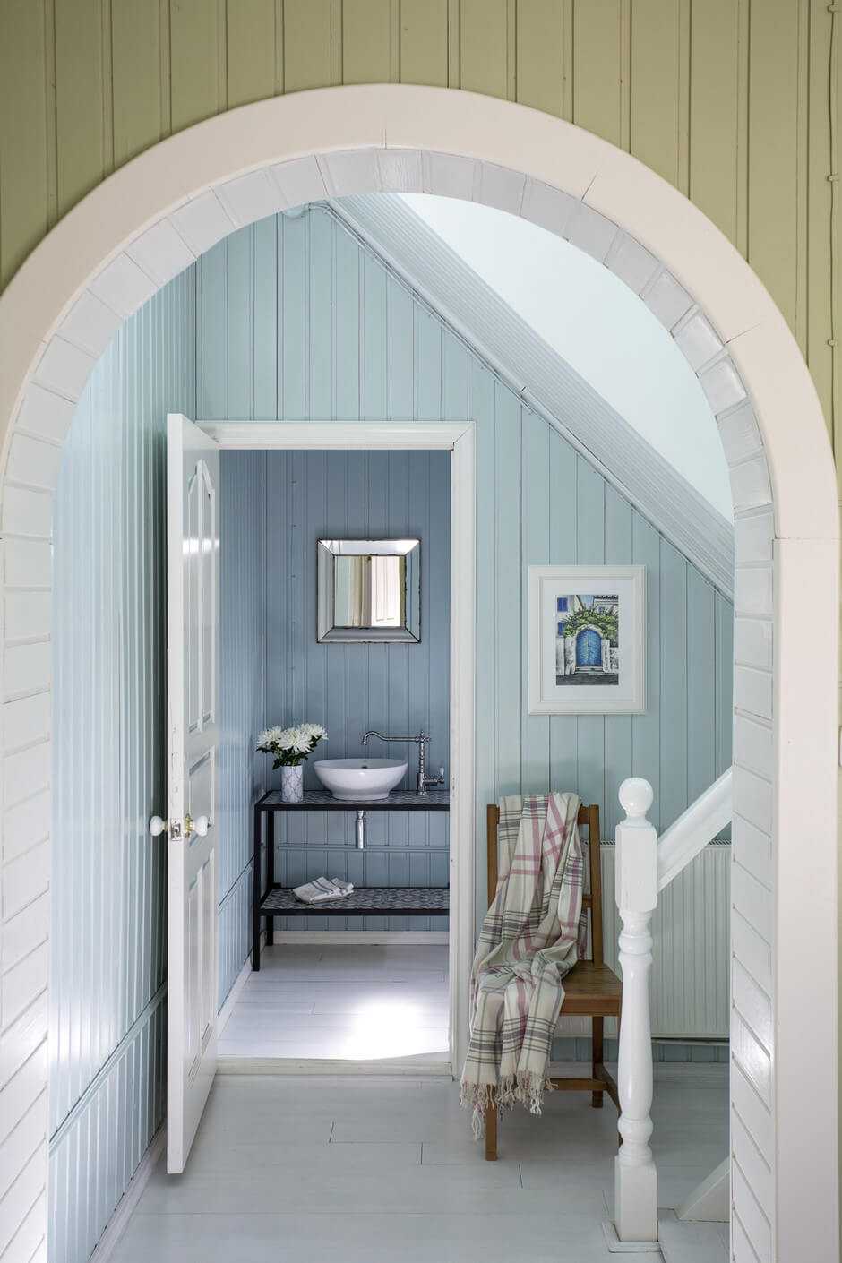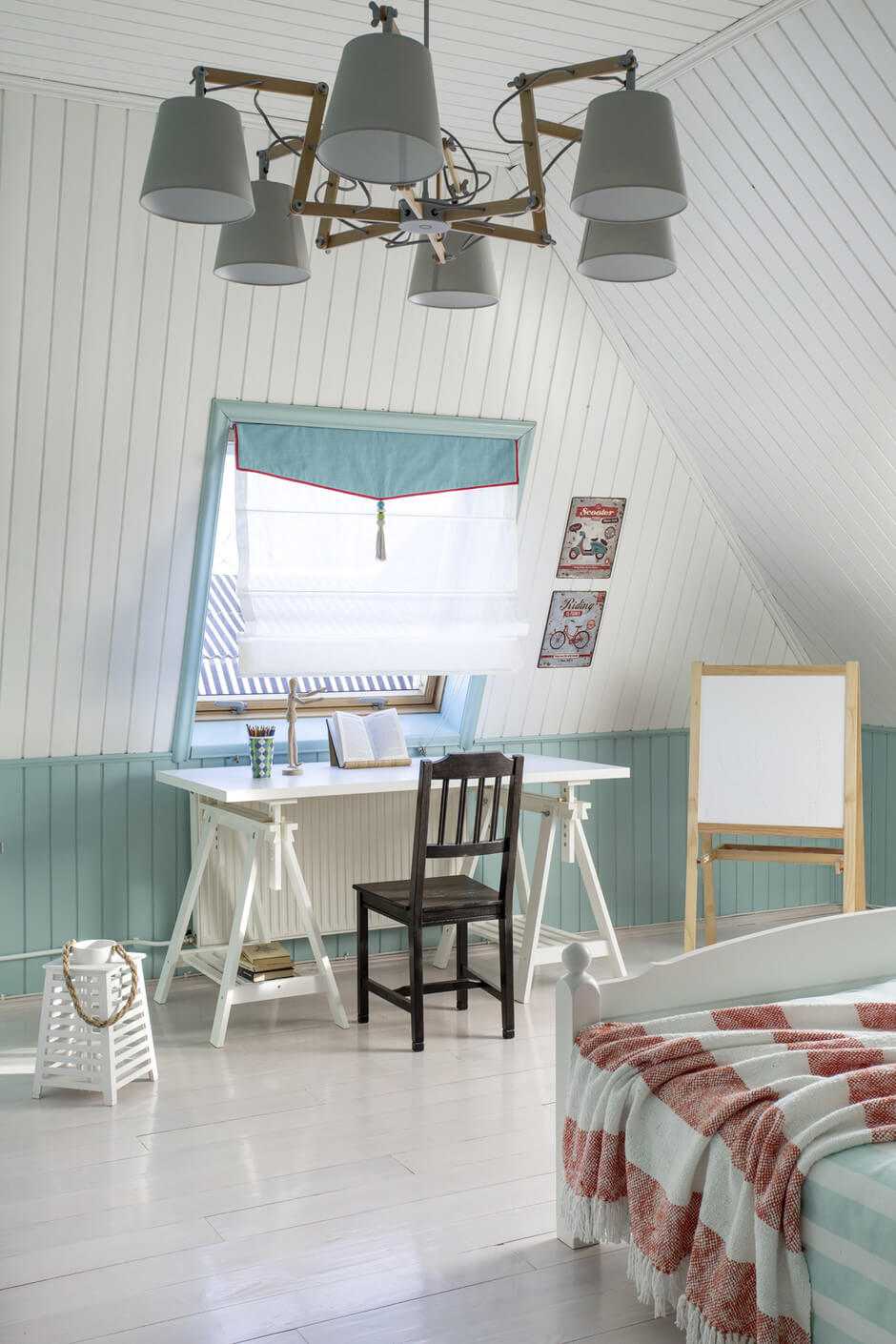 Хорошо смотрятся варианты, когда стены обшиваются частично вагонкой, частично декорируются обоями или покрываются фактурной штукатуркой