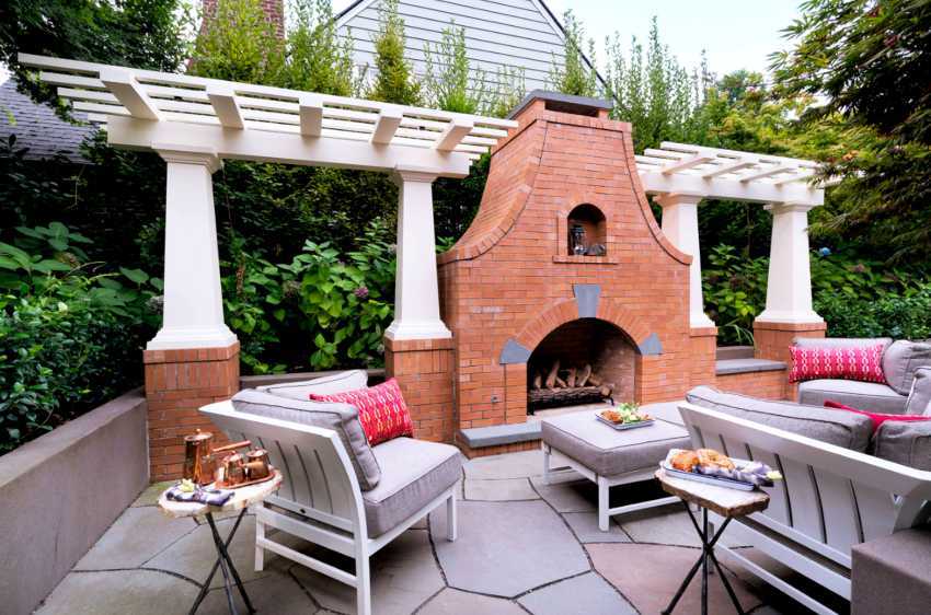 - Безопасность. Открытые или закрытые беседки из кирпича считаются более безопасными с точки зрения противопожарной защиты. Особенно это актуально, если планируется оборудовать строение печкой, грилем или мангалом.