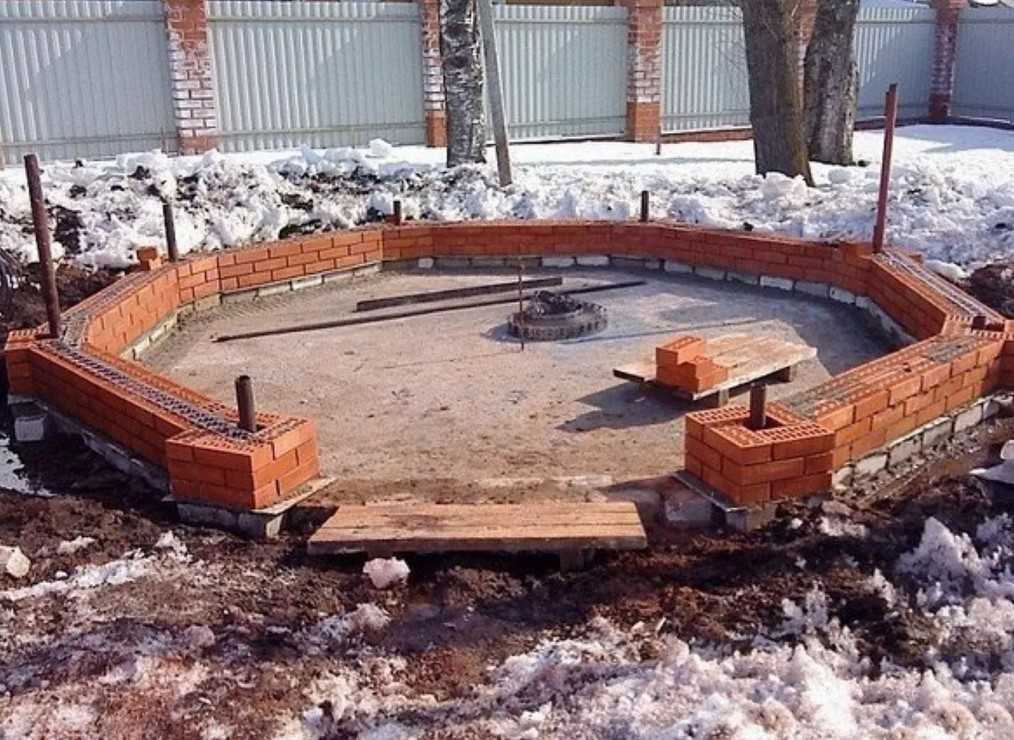 Для закрытых беседок из кирпича лучше планировать возведение сплошного фундамента