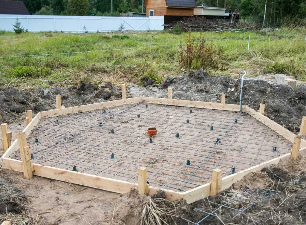 Если требуется сплошной армированный фундамент, работы начинаются с создания котлована, где размещается опалубка из дерева и устанавливается арматура. Завершающим этапом является заливка бетона. При сооружении плитного фундамента устройством пола зачастую пренебрегают.