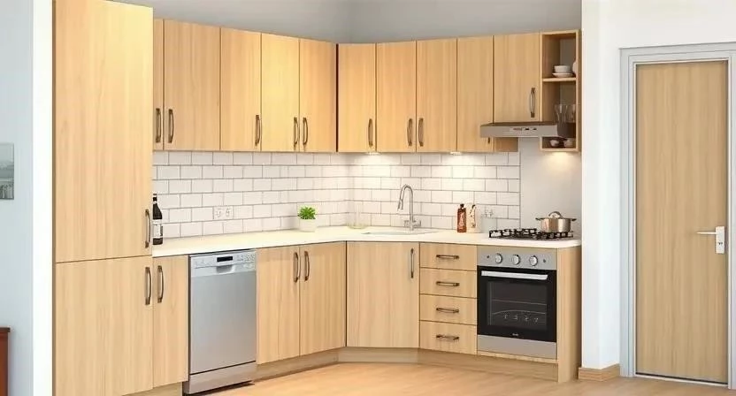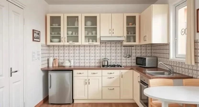 - Установка мебели и техники: Установите новый кухонный гарнитур и технику.