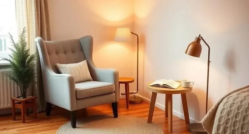 | Скандинавский | Белый, серый, бежевый | Простая, функциональная, из натуральных материалов | Мягкое, рассеянное | Текстиль, растения, картины |