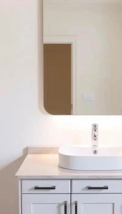 - Установка раковины и смесителя: Установите раковину на тумбу или кронштейны и подключите смеситель.