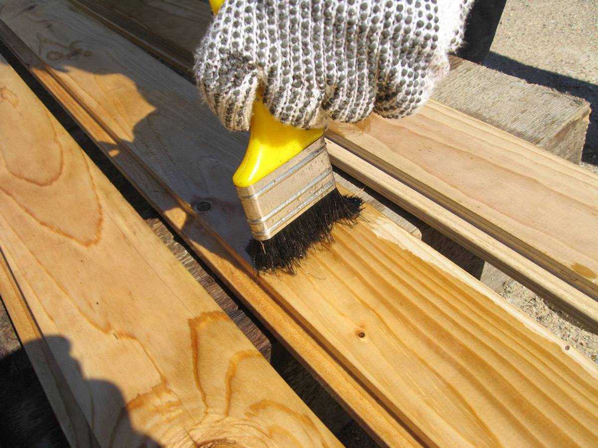 После того, как высохнет последний слой, нужно дополнительно покрыть лаги лаком, это защитит пропитку от вымывания. Тот же алгоритм подходит для досок пола. Никаких дополнительных средств защиты не требуется.