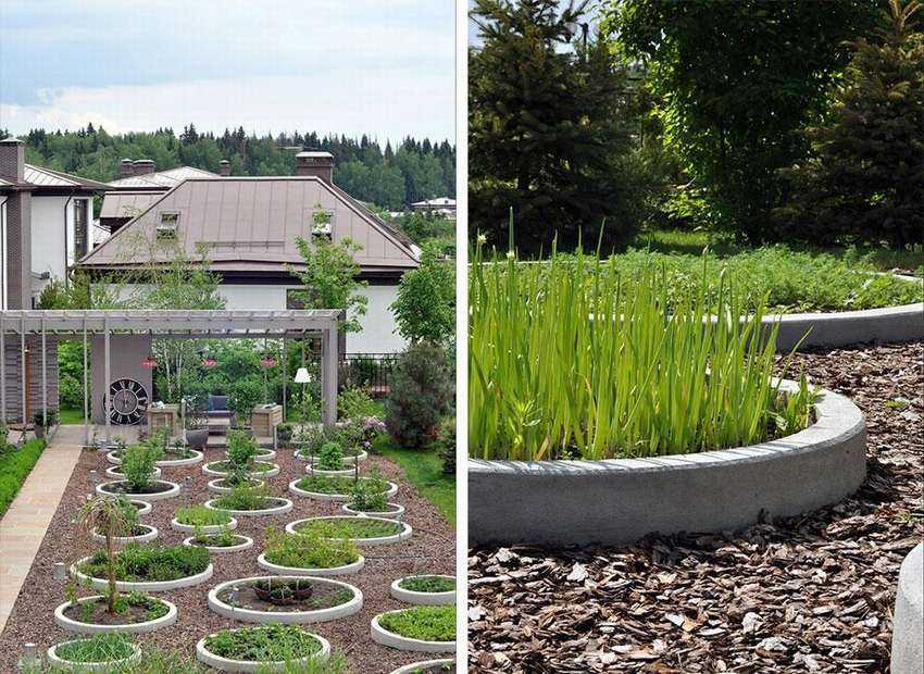 Одна круглая бетонная грядка может и не смотрится, а если много это уже целый узор.