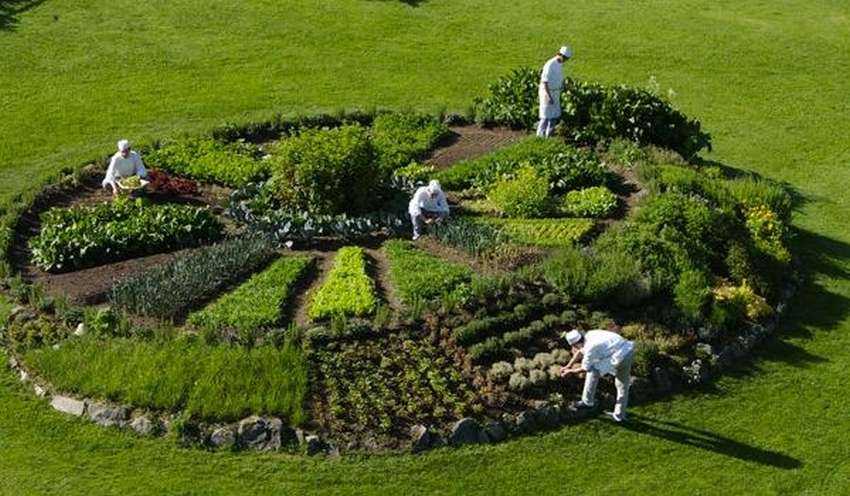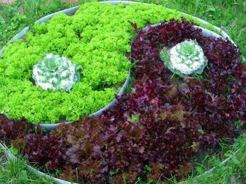 Овощи и зелень в круглой грядке может превратиться в произведение искусства.