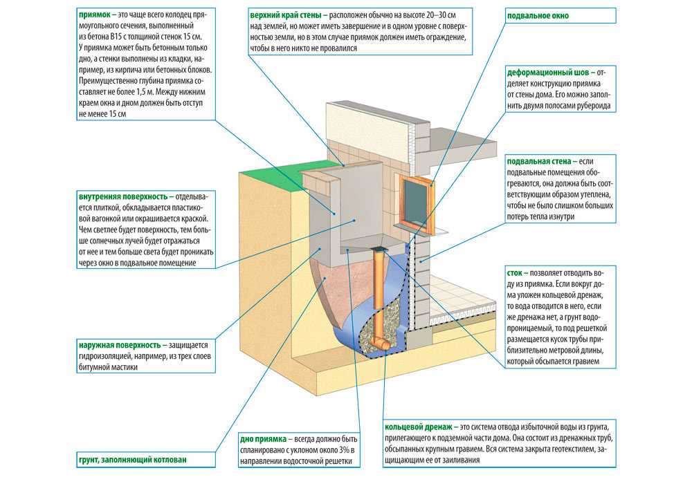 А теперь рассмотрим, как правильно расположить продухи. Нижний край вентиляционного отверстия должен находиться на расстоянии порядка 20 см. от верхнего края фундамента. Обычно отдушины располагаются достаточно высоко от земли, но если цоколь низкий, то есть сильно заглублен и выступает над землёй меньше этих 20 сантиметров, то расстояние всё равно нужно соблюсти, для чего перед отверстием делают углубление – так называемый приямок. В этом случае вентиляция подвального помещения будет обеспечена, но с чуть меньшей эффективностью.